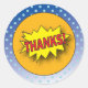 This fun superhero favour sticker is perfect for a superhero theme party. Matching invitation and thank you card.