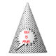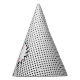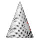 White and black polka dot party hat features speech bubble and area for you to highlight your child's name and age - name and age are easily editable. Easy to assemble. This dot pattern coordinates with Superhero Party Collection in our shop as well as most Superhero themed birthday parties. Also available in our shop without the speech bubble graphic.