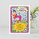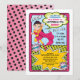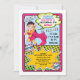 Calling all superheros, this invitation features a pretty young super girl flying through the air with comic book explosions and graphics. Super fun!