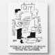 Boss at a DIY hardware store tells a staff member that putting him in charge of decking doesn't give him license to flatten customers. Funny Cartoon by UK Cartoonist, Nigel Sutherland. Funny plaque.