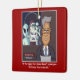 at christmass as a hanging decration for the chritmass tree.. its white porcline or cramic but very well made with added photo on one side.. also has a lovley red bag to keep it in.. execlent printed text in bold and black stands out well aganst the blue background of the photo.