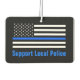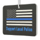 Elegant and bold thin blue line American flag to show support for Local Police Officers, Department and Law Enforcement. Black blackground with bright blue and white patriotic theme. Show your community pride around your house, home, small business or neighbourhood with a Support the Police themed gift for Father's day or any occasion for a new police Academy graduate or family member of a Police officer.