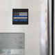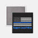 Elegant and bold thin blue line American flag to show support for Local Police Officers, Department and Law Enforcement. Black blackground with bright blue and white patriotic theme. Show your community pride around your house, home, small business or neighbourhood with a Support the Police themed gift for Father's day or any occasion for a new police Academy graduate or family member of a Police officer.