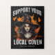 Dark and mystical design featuring a powerful witch in a fiery backdrop with the slogan “Support Your Local Coven.” Perfect for Halloween, witchcraft lovers, gothic fashion fans, and anyone who embraces a spooky, magical vibe.