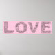 Love is spelled out in memory and honor of friends, mothers, daughters, sisters, aunts, grandmothers, godmothers, wives, cousins, granddaughters, godmothers, and goddaughters who have fought or are fighting breast cancer.