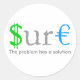 Word Sure, letter S made of Dollar currency symbol, letter E represents Euro money sign. Funny sticker for anyone. Customisable. You can change the image and you can change or delete the template text The problem has a solution. Have fun.