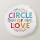 This pillow design features the phrase "Circle of Love" in a vibrant, multicolored display. The text itself forms a perfect circle, with each word a different eye-catching colour. It's a simple yet cheerful design perfect for spreading a message of love and connection.