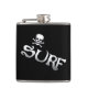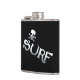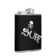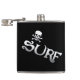 Surf and Skull flasks are for whiskey, tequila, water, other liquids, surfers, and surfing fans, horror fans, murder mystery fans, and people who like skulls. Surf and Skull is Steamy Raimon original art and calligraphy.