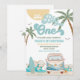 Celebrate your little ones big milestone with this colourful surf and beach themed 1st birthday invitation. Featuring palm trees, ocean waves, a retro van with a peace sign, and playful surfboard accents, this design captures a fun, laid-back vibe perfect for a tropical party. Ideal for kids birthdays, this unique invitation blends retro charm with modern style, making it a standout choice for beach lovers. Personalise easily with your party details and set the tone for an unforgettable celebration.