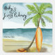 Baby on Board! Baby shower invitation - perfect for a summer baby shower. Beach theme. Watercolor design has a ocean and beach scene with surfboard, palm tree and summer hat.