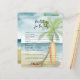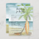 Baby on Board! Baby shower invitation - perfect for a summer baby shower. Beach theme. Watercolor design has a ocean and beach scene with surfboard, palm tree and summer hat.