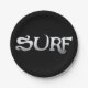 Surf paper plates are for surfers and surfing fans on the beach or anywhere. Surf is Steamy Raimon original calligraphy art.