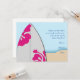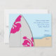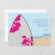 This fun modern summer time party invitation has a blue sky background with a warm looking beach below. To the left side is a surfboard with bright pink hibiscus flowers. Your customisable text goes to the right side. This would be a great invite for any summer event or picnic - especially Labour day or Memorial Day!