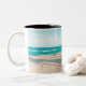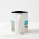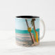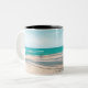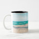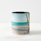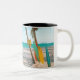 Surf boards on beach throw pillow Two-Tone coffee mug