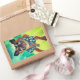 Cute watercolor of Chihuahua in Hawaiian shirt surfing on tennis ball themed surfboard