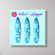 Surf Hawaii. Cute illustration with 3 groovy looking surfboards with a sixties flower design on the boards. Pink rose flower and a nice grunge- looking script font.