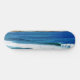 Pictured is a pretty scene of blue breaking sea waters and hills