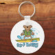 This cute monkey on summer vacation wears a green flowered hawaiian shirt and stands a top his surfboard. Text reads 'Surf Monkey'.