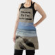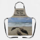 The landscape photo featured on this apron captures the crashing waves, beautiful brown sand, and a piece of driftwood. A bright blue sky appears on the horizon. This home chef apron is perfect for your beach house or coastal rental.