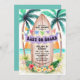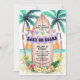 Adorable "Baby on Board" beach theme baby shower invitation features a watercolor tropical paradise with sun, sea, palm trees and a surfboard adorned with a party banner, festive string lights, hibiscus and palm leaves. The colours are perfect whether you are having a girl or boy little one, and this invitation will set a summery, fun-in-the-sun tone for your celebration. Art by KL Stock
