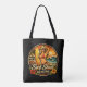 This retro inspired design captures vintage California surf shack energy with a blonde pin-up surfer clutching her surfboard, waves crashing onto the beach, with an antique van in the background. The ride the wave motto, paired with tropical hibiscus flowers complete the salty coastal sunset scene. This bold black tote is a stylish way to haul your everyday essentials island style, and makes a perfect beach bag too.