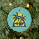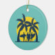 Cute graphic of beach scene with palm trees, surfers and the sun. Perfect for a surf lover.
