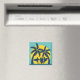 Cute graphic of beach scene with palm trees, surfers and the sun. Perfect for a surf lover.
