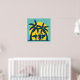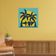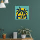 Cute graphic of beach scene with palm trees, surfers and the sun. Perfect for a surf lover.
