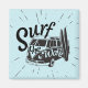 Surfer bus with two surfboards and surf the wave text on the car | © and ® Bigstock® - All Rights Reserved.