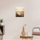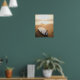 Surfboard laying on beach at sunset poster