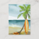 Baby on Board! Baby shower invitation - perfect for a summer baby shower. Beach theme. Watercolor design has a ocean and beach scene with surfboard, palm tree and summer hat.