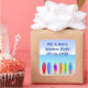 Features a beach background with sand, ocean and sky, 6 colourfully decorated surfboards. Perfect for party favours. Just add your text and you're all set. Matches our Surfboards Beach Party invitation.