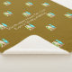 Beach-themed surfer's fleece blanket to personalise. A little pattern of three, illustrated surfboards covers this golden brown blanket. Customise text in the centre with a family name, or any text. Use to keep warm on windy days on the coast.