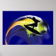 Surfer black figure & colourful wave on blue poste poster