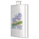 The product is a good size and came exactly as it was pictured. The lid is not attached to the flask, which could be dangerous on drunken nights... The print came out surprisingly well and looks very sharp. Would definitely recommend.