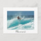 Postcard of a professional surfer surfing his board on a big wave at Banzai Pipeline, North Shore, Oahu, Hawaii with a white border and the text: 'Hawaii'.