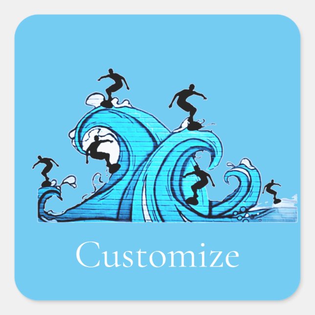Surfers on waves, big and small going in every direction to customise, personalise by changing to your name