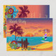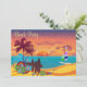 Pretty & vibrant customisable Beach Party invitations with a beautiful and colourful vector illustration of an abstract beach, waves, surfer silhouettes, palm trees, sunset, ocean and sailing boats - www.vectorartbox.com - funky modern invites easily customisable for many summer events. If you need any assistance customising your product please contact me through my store and I will be happy to help.
