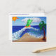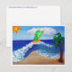 (The painting is of a green angel on an orange surfboard catching a wave. A sun glows in the background and palm tree gently sways on the beach. The wave is getting ready to crash on the beach smoothing the sandy surface. The green angel pays tribute to the Archangel Raphael whose colour is green and is known for bringing healing. The sun helps sustain life and through it plants such as palm trees strengthen and grow. The power of sun's energy is symbolised in the matched orange- yellow surfboard. The beach is clean and smooth. This painting was inspired by the "Wipe Out Cancer Angel". Instead of adding text of this painting, it was left open so you can your own wipe out, riding the wave, or other go with flow message to the beach, cloud, or sky.
