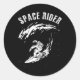 Cool design with an astronaut surfing in space and the saying "Space Rider".