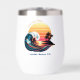 Introducing our Surfing at Sunset Tumbler: where coastal vibes meet refreshing elegance! Immerse yourself in the tranquil hues of the beach sunset with this captivating tumbler, featuring a surfer riding a wave set against a mesmerising sunset backdrop, surrounded by tropical vibes.
