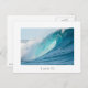 Postcard of a great surfing barrel wave breaking into a big splash and turquoise colours in the best place to surf, the Pacific Ocean with a white border and the text: 'Tahiti'.