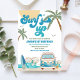 Celebrate your little ones big day with this retro surfing beach birthday invitation! Featuring playful palm trees, ocean waves, a peace-sign van, and a sunny coastal vibe, this design is perfect for a fun, tropical party theme. The colorful layout captures a groovy, carefree spirit that guests will love. Ideal for kids birthdays, summer parties, or any beach-inspired celebration, this invitation sets the tone for a memorable event.