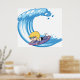 A surfing boy riding his board on a big wave. This design looks really effective on these Poster