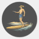Surfing Cowboy Classic Round Sticker