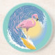 Surfing Flamingo Graphic Illustration Coaster