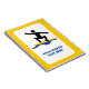 Surfing gifts, surfer on his surfboard custom gift design featuring a minimalist black icon of a surfer standing up on his yellow surfboard over a blue wave and a yellow border around. This cool design is a template and it is completely customisable. Personalise it and change text with monogram, name or your message. The perfect gift ideas for the surfer. See lots of designs at our Sports Gifts store.