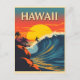The poster effectively communicates the allure of Hawaii, highlighting its natural beauty, vibrant culture, and adventurous spirit. It invites viewers to imagine themselves experiencing the thrill of surfing, basking in the warmth of the sun, and enjoying the breathtaking landscapes of the islands.