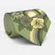 Moss green, olive and yellow colorway. This tie is inspired by the board shorts and aloha shirts of the sixties, this boldly coloured pattern combines competition stripes, hibiscus & a palm tree island. These designs come in several colorways.