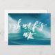 NewParkLane - Postcard, with a photo of beautiful aqua blue ocean waves, with 'Surf's Up' quote in fun script typography.